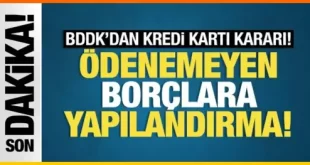 Son dakika haberine göre, kredi kartlarında birikmiş borçlar 60 aya kadar vadeyle yapılandırabilecek.. Yapılandırmada müşterilerin kredi kartları kapatılmayacak, yapılandırma sonrası varsa kalan limitlerini kullanmaya devam edebilecekler. Türkiye Cumhuriyet Merkez Bankası (TCMB) ile Bankacılık Düzenleme ve Denetleme Kurumu (BDDK) tarafından bireysel kredi kartlarına ilişkin eş güdümlü adımlar atıldı… TCMB’nin Kredi Kartı …