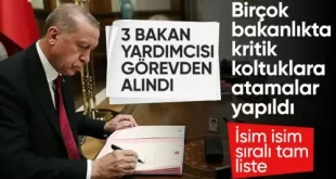 Cumhurbaşkanlığı tarafından yapılan atama kararları Resmi Gazete’de yayımlandı, karar ile birlikte 4 bakanlığa yeni Bakan Yardımcıları atandı. Cumhurbaşkanı Recep Tayyip Erdoğan’ın imzasıyla yayınlanan Resmi Gazete’de; 3 bakan yardımcısı görevden alındı, 4 yeni bakan yardımcısı atandı, bazı bakanlıklarda kritik koltuklarda görev değişimleri yaşandı. Resmi Gazete’de yer alan atamaları isim isim listeledik. …