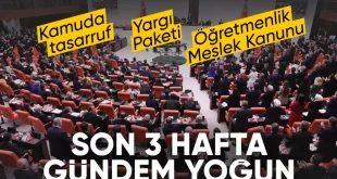 Ay sonunda tatile girmesi beklenen TBMM’de Öğretmenlik Meslek Kanunu görüşmeleri başlayacak. 9’uncu Yargı Paketi’nin ilk görüşmeleri, Adalet Komisyonu’nda yapılacak. Plan ve Bütçe Komisyonu’nun gündeminde ise kamuda tasarruf tedbirlerine ilişkin düzenleme var. Öğretmenlere yönelik şiddetin önlenmesi, yargısal süreçlerin hızlandırılmasına yönelik düzenlemeler ve kamuda tasarruf tedbirleri… Bu hafta hem Meclis Genel Kurulu’nda …