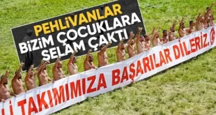 663. Tarihi Kırkpınar Yağlı Güreşleri’nde başpehlivanlık müsabakası öncesi başpehlivanlar pankart açarak A Milli Futbol Takımı’na bozkurt işaretiyle destek verdi. A Milli Futbol Takımımız, bugün kritik maça çıkıyor… 2024 Avrupa Futbol Şampiyonası’nda (EURO 2024) bu akşam oynanacak Türkiye – Hollanda maçı öncesi A Milli Takım’a bir destek de Kırkpınar’daki başpehlivanlardan geldi. …