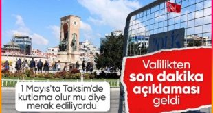 İstanbul Valiliği, Taksim Meydanı’nın 1 Mayıs kutlamalarına kapalı olacağını açıkladı. Vali Gül konuya ilişkin, “Taksim Meydanı bu yıl 1 Mayıs kutlamalarına kapalıdır. Kutlamaların yapılacağı alan bu hafta içi netleşecek” ifadelerini kullandı. İstanbul Valiliği, 1 Mayıs Emek ve Dayanışma Günü’ne sayılı günler kala Taksim kararını duyurdu. İstanbul Valisi Davut Gül, İstanbul …