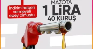 Sektör temsilcilerinden edinilen bilgiye göre 25 Nisan Perşembe gününden itibaren geçerli olmak üzere motorin grubuna 1 lira 40 kuruşluk indirim öngörülüyor. Döviz kurlarındaki dalgalanma devam ediyor. Bu nedenle brent petrol fiyatları bir iniyor, bir çıkıyor. Yaşanan hareketlilik ise direkt olarak akaryakıt fiyatlarını etkiliyor. Sürücüler ise fiyatları yakından takip ediyor. İndirim …