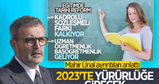 12 maddeden oluşan Öğretmenlik Meslek Kanunu ile ilgili konuşan AK Parti Grup Başkanvekili Mahir Ünal, kanun teklifinin 2023 yılında yürürlüğe gireceğini belirtti. Cumhurbaşkanı Recep Tayyip Erdoğan'ın ilk olarak 24 Kasım Öğretmenler Günü'nde müjdesini verdiği ve son Milli Eğitim Şurası'nda açıkladığı öğretmenler için hazırlanan ve uzunca bir süredir gündemde olan Öğretmenlik Meslek Kanunu Teklifi'nde sona gelindi. [...]