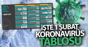 Sağlık Bakanlığı tarafından 1 Şubat koronavirüs tablosu, vaka, hasta, test, vefat sayısı ve son durum açıklandı. Türkiye'de son 24 saatte 141 bin 703 Kovid-19 testi yapıldı, 7 bin 719 kişinin testi pozitif çıktı, 124 kişi hayatını kaybetti. Ağır hasta 1615 oldu, 8 bin 16 kişinin Kovid-19 tedavisinin/karantinasının sona ermesiyle iyileşen sayısı 2 milyon 370 bin [...]