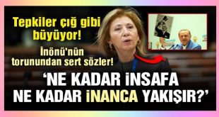 Cumhurbaşkanı Recep Tayyip Erdoğan’ın, önceki gün İsmet İnönü için yaptığı ‘Bunların hepsi Amerikancı’ açıklamasının ardından tepkiler çığ gibi büyüyor. Türkiye Cumhuriyeti’nin 2. Cumhurbaşkanı ve Kurtuluş Savaşı kahramanı İsmet İnönü’nün torunu Gülsün Bilgehan, Erdoğan’ın bu sözlerine, “İnönü’nün bağımsızlığından mı şüphe ediliyor? Vatanseverliğinden mi şüphe ediliyor? Bütün ömrü cephelerde geçmiş. Yemen’i var, …
