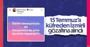 İçişleri Bakanı Süleyman Soylu, 15 Temmuz kanlı darbe girişimine yönelik küfürlü paylaşımda bulunan şahsın İzmir’de gözaltına alındığını duyurdu. Fetullahçı Terör Örgütü (FETÖ) 6 yıl önce 15 Temmuz’da kanlı bir darbe girişimine kalkıştı. Darbe girişimine karşı sokağa çıkan halk, büyük bir kahramanlık örneği sergiledi. Kanlı darbe girişiminin altıncı yılında yaşananlar anılırken, …