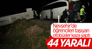 Nevşehir'de öğrencileri taşıyan iki otobüsün karıştığı trafik kazasında 44 kişi yaralandı. Yaralılar çeşitli hastanelerde tedavi altına alındı. Hacıbektaş ilçesinden Nevşehir istikametine seyreden ve sürücüsü öğrenilemeyen otobüs, Gümüşkent Köyü yakınlarında yola aniden çıktığı öne sürülen çekiciye çarptı. Bu sırada arkadan gelen otobüs de kazaya karışmamak için sürücüsünün manevra yapmasıyla yol kenarına devrildi. İhbar üzerine, kaza yerine [...]