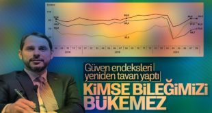 Ağustos ayı reel sektör güven endeksi verilerini değerlendiren Hazine ve Maliye Bakanı Albayrak, “Biz gücümüzü bu ülke için çalışan, üreten, inanan, destek veren milyonlardan alıyoruz.” dedi. Hazine ve Maliye Bakanı Berat Albayrak: Kimse bileğimizi bükemez.Hazine ve Maliye Bakanı Berat Albayrak, sektörlere ilişkin güven endekslerini ve kapasite kullanım oranını değerlendirdi. Bakan …
