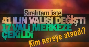 Cumhurbaşkanı Erdoğan’ın imzasıyla yayınlanan atama kararlarına göre 41 ilin valisi değişti. Cumhurbaşkanı Erdoğan’ın imzasıyla Resmi Gazete’de yayımlanan atama kararlarına göre 41 ilin valisi değişti. Buna göre, 18 ile yeni vali ataması yapılırken, 23 ilin valisi yer değiştirdi. MUĞLA VALİSİ, CUMHURBAŞKANI BAŞDANIŞMANI OLDU 17 ilin valisi mülkiye başmüfettişi olarak merkeze alınırken, …