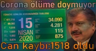 Haberin Detayı İçin TıklayınızCorona ölümleri durdurulamıyor! Türkiye’de can kaybı 1518’e yükseldi