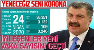 Sağlık Bakanı Koca, son 24 saatte iyileşen hasta sayısının, yeni vaka sayısını geçtiğini belirterek, “Bu noktada geri dönüş olmamalı” dedi. Sağlık Bakanı Fahrettin Koca, Twitter hesabı üzerinden Türkiye’deki koronavirüs vakalarına ilişkin son verileri paylaştı. 109 KİŞİ DAHA VİRÜSE YENİK DÜŞTÜ Bakan Koca’nın paylaştığı verilere göre; koronavirüs nedeniyle ülkede 109 kişi …
