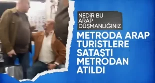 Metroya binen Arap turiste Türkçe bilmediği için zorbalık yapan ve vurmaya çalışan saldırgana diğer yolcular müdahale ederken yaşananlar cep telefonu kamerasına yansıdı. Türkiye’de yabancı uyruklulara, özellikle de Araplara yönelik çirkin davranışlara bir yenisi daha eklendi. Çirkin olay İstanbul’da bir metroda yaşandı. Eşiyle birlikte metroya binen Arap turist kapı girişinde oturan …