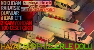 ABD’nin New York kentinde bir cenaze evinin önündeki iki kamyonette, 100 kişinin cenazesi bulundu. Salgının en çok etkilediği New York eyaletinde bir cenaze evinin önündeki iki kamyonetten kötü kokular gelince, çevre sakinleri şikayetçi oldu. 100 KİŞİNİN CENAZESİ ÇIKTI Polis çevrede inceleme başlattı. Yapılan araştırmada iki kamyonetin içinde 100 kişinin cenazesinin …