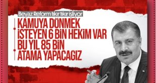 Sağlık Bakanı Fahrettin Koca, beyaz reformun ardından 6 binden fazla hekimin kamuya dönmek üzere başvuru yaptığını belirterek, “Toplam 85 bin atama bu yıl içerisinde yapılacak” dedi. Sağlıkta ‘Beyaz Reform’ dönemi yenilikleri de beraberinde getirdi. Yeni düzenlemenin sağlıkta bir dönüm noktası olacağını belirten Sağlık Bakanı Fahrettin Koca, 6 binden fazla hekimin kamuya dönmek için …