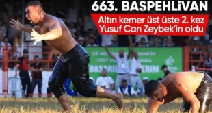 663. Tarihi Kırkpınar Yağlı Güreşleri’nde başpehlivanlığı, final maçında Mustafa Taş’ı yenen Yusuf Can Zeybek kazandı. Zeybek, bu sonuçla üst üste 2. kez başpehlivan oldu. 663. Tarihi Kırkpınar Yağlı Güreşleri kıyasıya mücadelelere sahne oldu. Edirne’de 4 Temmuz Perşembe günü başpehlivanlık ön eleme müsabakalarıyla başlayan ve Cuma günü küçük boy kategorilerdeki pehlivanların …
