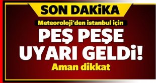 Meteorolojiden yapılan son dakika açıklamasında, “Bugün 21.40 – 23.30 saatleri arasında Boğaz çevresi ve Avrupa Yakası başta olmak üzere İstanbul’da yerel olarak kuvvetli gök gürültülü sağanak yağış beklendiğinden sel, su baskını, yıldırım, yerel dolu yağışı, yağış anında kuvvetli rüzgar gibi olumsuzluklara karşı dikkatli ve tedbirli olunması gerekmektedir.” denildi. Meteoroloji Genel …