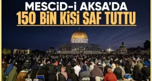 Haberin Detayı İçin TıklayınızZulüm altındaki Mescid-i Aksa’da 150 bin kişi yan yana saf tuttu