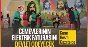 Cemevlerinin aydınlatma giderlerinin Kültür ve Turizm Bakanlığı bütçesinden karşılanmasına dair yönetmelik, Resmi Gazete’de yayınlandı. Cemevlerinin Aydınlatma Giderlerinin Ödenmesine Dair Kültür ve Turizm Bakanlığı Yönetmeliği Resmi Gazete’de yayınlandı. İbadete dahil yerlerin elektrik gideri bakanlığa ait Yönetmelikle birlikte, Alevilerin ve Bektaşilerin cem erkanı yürüttükleri meydan adlı bölüm başta olmak üzere; kurban kesim …