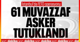 İstanbul’daki FETÖ operasyonunda gözaltına alınan görevdeki 61 asker tutuklandı. FETÖ’ye yönelik İstanbul merkezli 36 ilde düzenlenen geniş çaplı operasyon kapsamında gözaltına alınan 61 muvazzaf asker tutuklandı. Gözaltına alınanlar arasında albay, yarbay, binbaşı ve yüzbaşı rütbesinde subaylar da yer alıyor. İstanbul Cumhuriyet Başsavcılığı’nın yürüttüğü FETÖ soruşturması çerçevesinde yakalanan 62 şüpheli, emniyetteki …