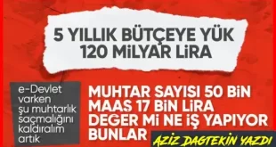 Aziz Dağtekin Yazdı Muhtarlık artık önemini yitiren bir kurum haline gelmiştir. Muhtarlık kurumunun 5 yıllık görev sürecinde devlet hazinesine yükü 120 milyar liraları geçmektedir. Bu 120 milyar lira ile 11 ilin deprem konutları yeniden inşası demektir. 31 Mart seçimlerinde dikkat ettim okullarda oy kullanılan mahalde muhtarların aday listeleri çevre kirliliğine …
