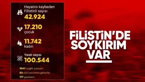 İsrail ordusunun, Gazze Şeridi’ne 7 Ekim 2023’ten bu yana düzenlediği saldırılarda hayatını kaybedenlerin sayısı son 24 saatte 38 artarak 42 bin 924’e yükseldi.
