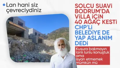Akbelen’de ‘Ağaçlar kesiliyor’ diye ortalığı ayağa kaldıran şarkıcı Suavi’nin Bodrum’da villalar dikmek için ağaç katliamı yaptığı ortaya çıktı.