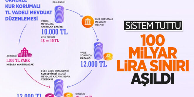 Kur korumalı mevduat uygulamasına katılım bankalarının da dahil olduğunu belirten Gürcan, şunları kaydetti: “Uygulamanın henüz başında olmamıza rağmen vatandaşımızın çok ciddi bir teveccühünü görüyoruz. Kur korumalı Türk Lirası mevduat hesabı 24 Aralık itibarıyla 28,2 milyar lirayken, 7 Ocak Cuma akşamı itibarıyla 107,6 milyar liraya yükseldi. Buradan da vatandaşımızın kur korumalı Türk Lirası mevduat hesabına aşırı ilgi gösterdiğini görebiliyoruz. Bu da sistemin ne kadar başarılı olduğunu gösteriyor.”