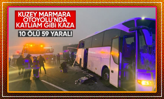Kuzey Marmara Otoyolu’nun Sakarya mevkiinde 7 aracın karıştığı kazada 10 kişi öldü, 59 kişi yaralandı.
