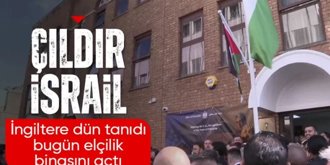 İngiltere’nin Filistin’i devlet olarak tanımasının ardından Londra’daki Filistin Büyükelçiliği önünde bayrak töreni düzenlendi.