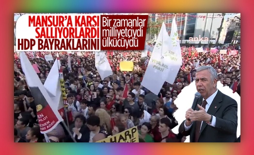 Mansur Yavaş’ın sahnede konuşma yaptığı sırada HDP bayraklarının sallandığı görüldü.