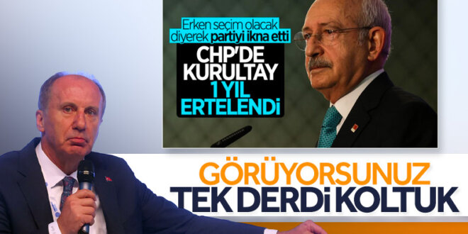 İnce, CHP’nin kurultayı ertelemesini de eleştirip erken seçim istemelerinin tutarlı olmadığını belirterek, “Muhalefet erken seçim istiyor. Ama kendisindeki seçimi erteliyor. Ya böyle kafa olur mu? İktidara diyorsun gel erken seçim yapalım sonra kurultayı 1 yıl erteliyorsun. Erdoğan sana dese niye erteliyorsun sen diyeceksin seçim var diye erteliyorum. Erdoğan da dese ki ben de 2023’te değil 2024’te yapacağım seçimi sen ne diyeceksin. Demokrat değilsin ve tutarlı değilsin. Derdin sadece koltuk, kurultayı erteliyorsun ve milletvekillerine siz kıpırdamayın ben belirleyeceğim durumu diyorsunuz. Yani derdi Cumhurbaşkanlığı seçimi falan değil. Bunların tek derdi koltuk.” ifadelerini kullandı.