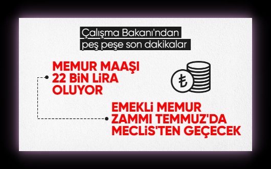 Temmuz ayında bir adım daha atıyoruz. En düşük memur maaşını en düşük kamu maaşından aşağı kalmayacak şekilde artıracağız. En düşük memur maaşı da 22 bin lirayı bulacak. Memur maaşlarındaki bu artışlar otomatik olarak emeklilere de yansıyacak. Bakanımıza talimat verdim.”