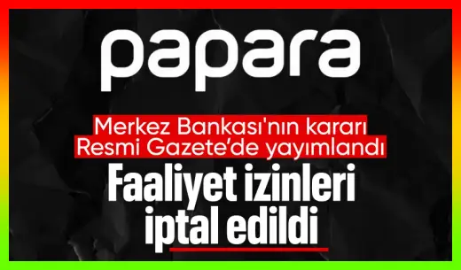 Resmi Gazete’de 31 Ekim 2025’te yayımlanan 33063 sayılı karara göre Papara’nın faaliyet izinleri Merkez Bankası kararıyla iptal edildi.