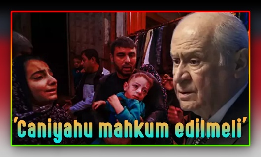 MHP Genel Başkanı Devlet Bahçeli, İsrail’in Gazze’ye yönelik saldırılarına ilişkin, “İsrail tazminat ödemeye mahkum edilmeli, ‘Caniyahu’ Uluslararası Ceza Mahkemesi’nde adalet ve insanlık namına yargılanmalıdır. Türk milleti akan kana, günbegün mesafe alan soykırıma daha fazla sessiz ve seyirci kalmama iradesindedir” dedi.