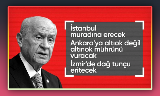 Bahçeli konuşmasında, Cumhur İttifakı adaylarına destek açıklaması yaparak, “İstanbul muradına erecek, Ankara’ya altı ok değil altın ok mühür vuracak, İzmir’de dağın sıcaklığı tuncu eritip savuracaktır.” dedi.