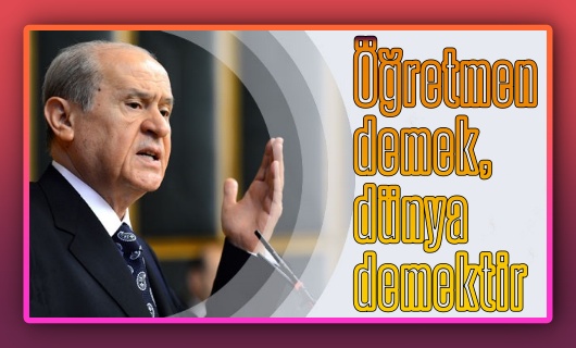 “Öğretmen demek dünya demektir” ifadesini kullanan MHP lideri Devlet Bahçeli “Aynı zamanda öğretmen demek cehaletin avcısı, ümitlerimizin kamçısı, öğrenme susuzluğumuzun pınarı, kendimizi ve çevremizi tanıma arayışımızın mihmandarı ve müşahidi anlamına gelecektir. Biliyoruz ki eğitim ve öğretim dediğimiz çok boyutlu süreç, satırlar ve sınıflar arasında değil elbette gönüller arasındadır.” değerlendirmesinde bulundu.