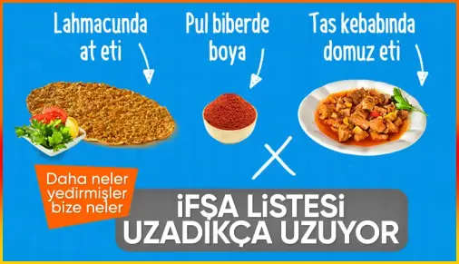 Listede pul bibere boya kullanılmasından, lahmacuna at eti ve tas kebaba domuz eti karıştırılmasına kadar halkın sağlığını tehdit eden tüm firmalar teşhir ediliyor.
