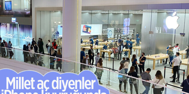 İstanbul’daki bir AVM’de bulunan Apple mağazasında yoğunluk oluştu. Mağazanın önünde fiyatları 10 bin 999 lira ile 22 bin 999 lira arasında değişen telefonlardan almak için gelenlerin oluşturduğu uzun sıra dikkat çekti.