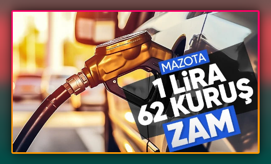 Sektör kaynaklarının aktardığı bilgiye göre, motorinin litre fiyatında gece yarısından geçerli olmak üzere 1 lira 62 kuruşluk fiyat artışı bekleniyor.