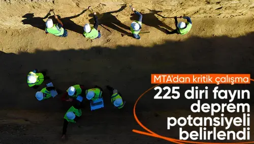 Maden Tetkik ve Arama Genel Müdürlüğü, geçmiş depremlerin izlerini inceleyerek 225 diri fayın deprem üretme potansiyelini ortaya koydu.
