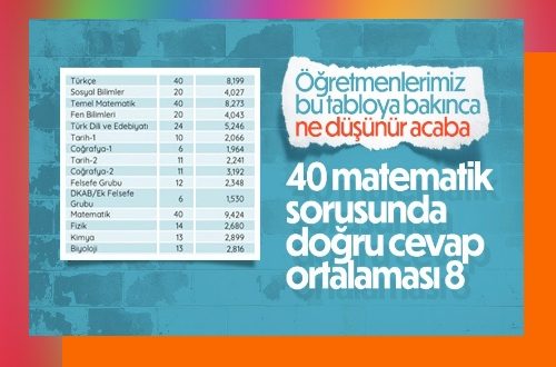 Bu yılki YKS testlerindeki ortalamalara ilişkin dikkat çeken veriler de paylaşıldı.