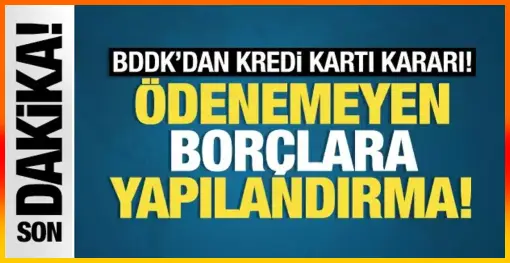 Bankacılık Düzenleme ve Denetleme Kurumundan (BDDK) yapılan son dakika açıklamasında, kredi kartı borçlarına yapılandırma getirildi..