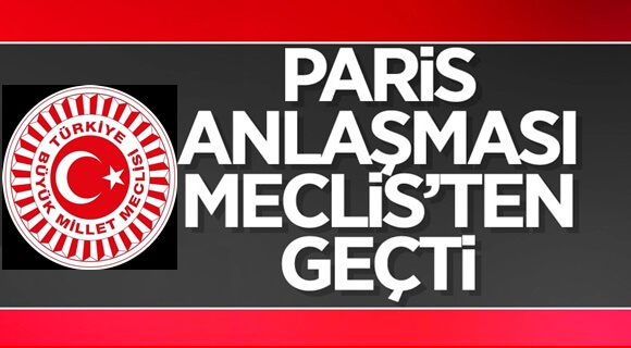 Paris Anlaşmasının Onaylanmasının Uygun Bulunduğuna Dair Kanun Teklifi, TBMM Genel Kurulunda kabul edildi.