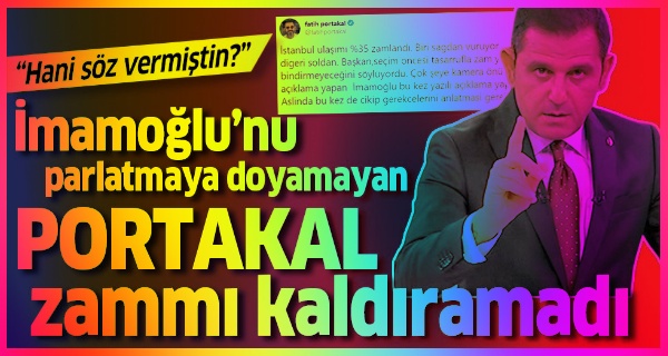 İstanbul’da Ulaşım Koordinasyon Merkezinin (UKOME) kararıyla toplu ulaşım ücretlerine yüzde 35 zam yapıldı. Seçimlerden önce “hayatı ucuzlatacağım” vaatleriyle oy toplayan İBB Başkanı Ekrem İmamoğlu sözünde durmadı. İBB’dekii ulaşım zamlarını eleştiren isimlerden biri de İmamoğlu ile arasından su sızmayan ve her fırsatta sorgusuz sualsiz parlatmaya çalışan Fatih Portakal oldu.