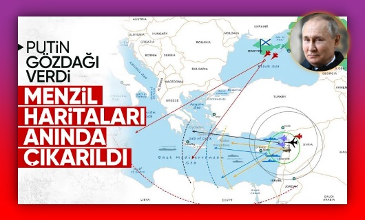 Putin açıklaması sonrası, haritalar yayınlanmaya başladı. Buna göre, Akdeniz’de ABD’ye ait 2 uçak gemisinin, Karadeniz üzerindeki hava sahasında Kinjal füze sistemiyle donatılmış Mig-31 savaş uçaklarının menzilinde olduğu görülüyor.