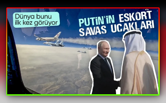 Putin’in uçağına Birleşik Arap Emirlikleri’ne yolculuğu sırasında füzelerle donatılmış 4 Su-35 savaş uçağı eşlik etti. Rusya Savunma Bakanlığının yayınladığı videoya göre, Putin’in içerisinde bulunduğu İL-96 model devlet başkanlığı uçağına eşlik etmek üzere savaş uçakları da kalkış yaptı.