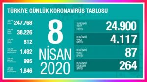 Sağlık Bakanlığı, koronavirüs sebebiyle 87 kişinin daha yaşamını yitirdiğini açıkladı. Salgın nedeniyle hayatını kaybedenlerin toplam sayısı 812’ye ulaşırken, toplam vaka sayısı 38.226’ya yükseldi.