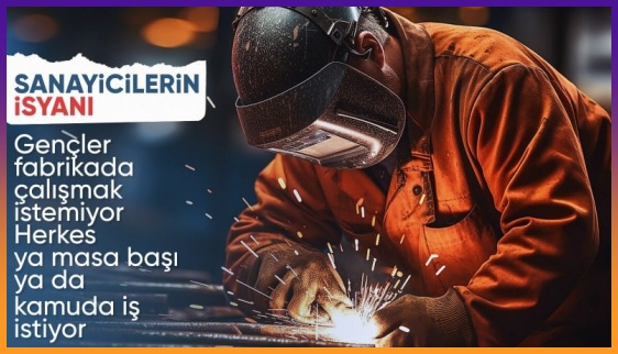 Türk sanayisinde ara eleman bulmakta sorun yaşandığını söyleyen sanayiciler, gençlerin fabrikada çalışmak yerine masa başı iş veya memurluk istemelerinden dert yakınıyor.