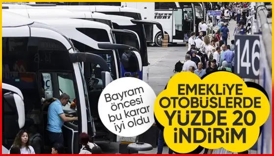 Şehirler arası otobüs taşımacılığı yapan gerçek ve tüzel kişilerce, emekli olduğunu belgeleyenlere tarife üzerinden yüzde 20 indirim yapılacak. Karar, bugün itibarıyla yürürlüğe girdi.