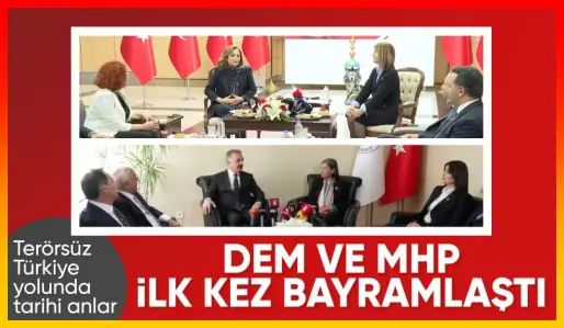 Bayramın ikinci günü siyasi partilerin bayramlaşma programıyla geçiyor.. MHP ve DEM Parti heyetleri, karşılıklı bayram ziyaretlerinde bulundu.